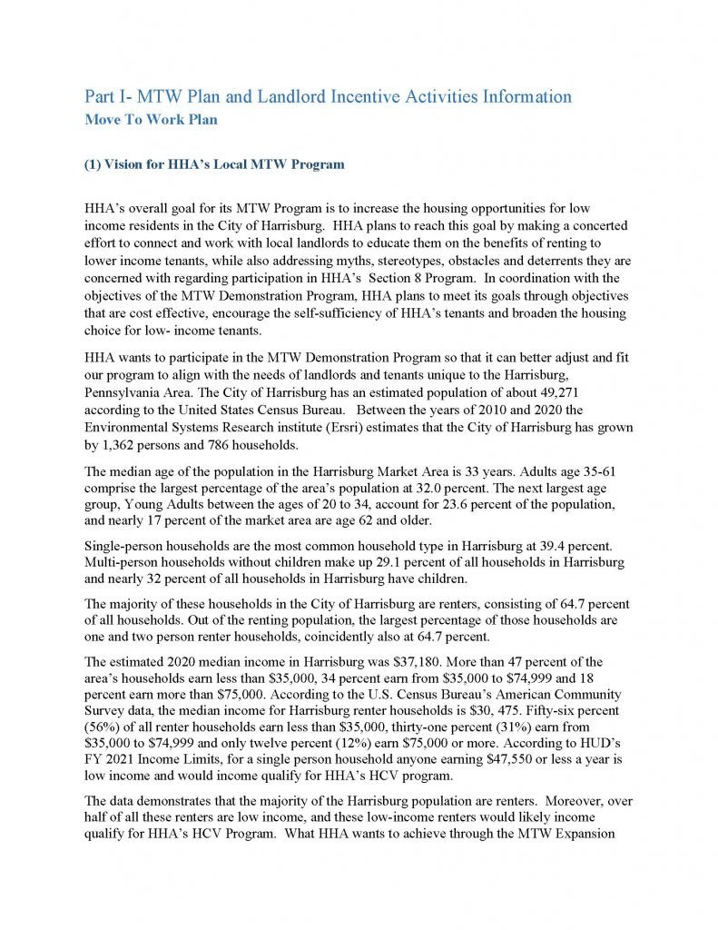 You can review our Moving To Work (MTW) Plan draft, here! You can give feedback at our public hearing: